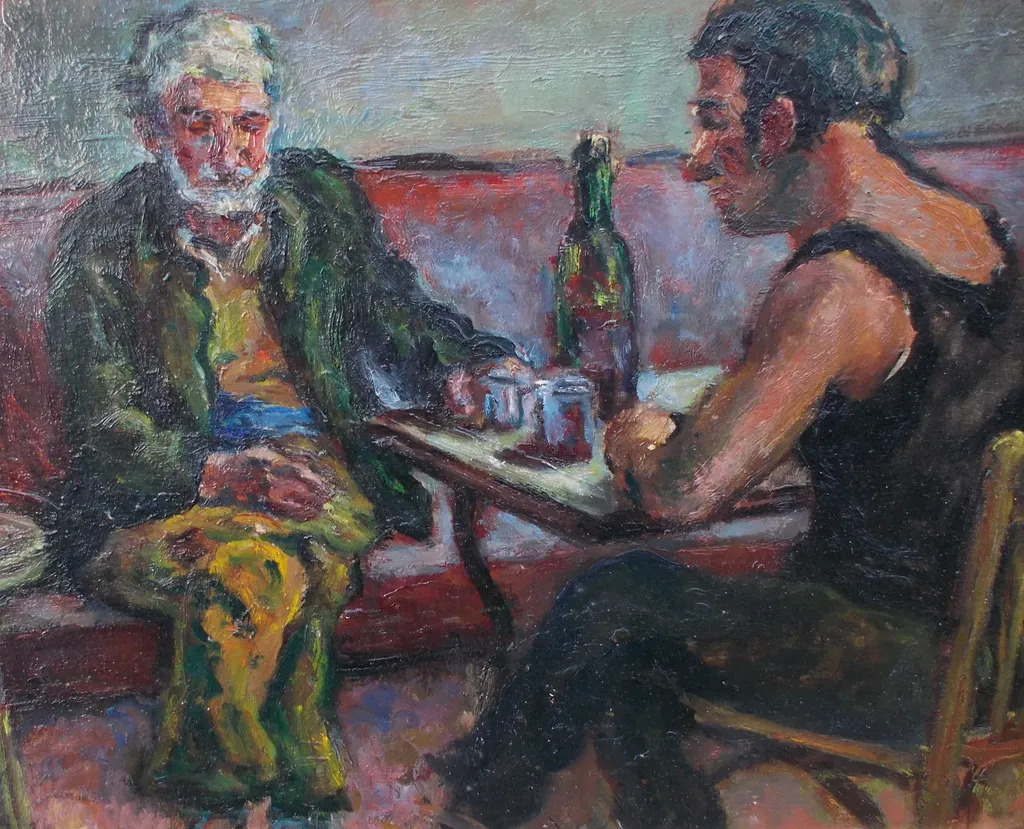 "Les clochars au bistrot", Renée Unik, (vers 1930), huile sur toile