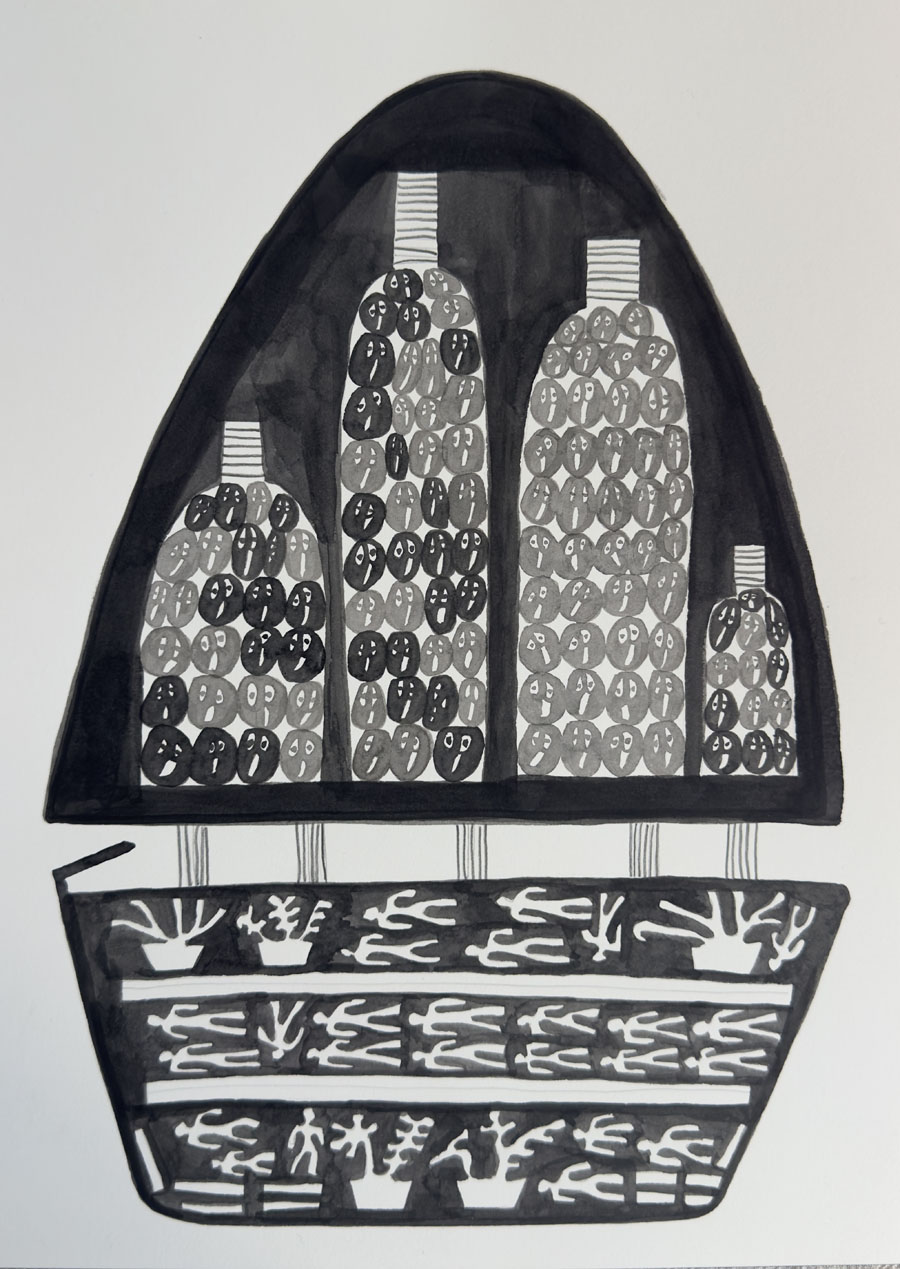 Si ces histoires ont été en grande partie recouvertes par l’oubli, le chrysanthème est devenu en France une fleur associée aux rituels funéraires et aussi un symbole d’immortalité. Dans l’exposition The Crossing Garden: How Many Souls for Your Flower, Katja Lee Eliad donne vie à ces graines voyageuses. Personnifiées, elles deviennent les protagonistes d’un récit qui relie l’histoire des plantes, aux routes maritimes de l’expansion coloniale française. Leur circulation évoque les réseaux qui transportaient simultanément marchandises, plantes et personnes réduites en esclavage, révélant les violences souvent effacées derrière les récits d’acclimatation botanique.